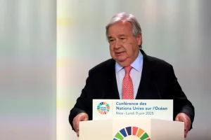 وفي ذات المؤتمر ، حذر الأمين العام للأمم المتحدة، انطونيو غويتريش مما وصفه ب(الجشع ) والذي قال إنه يدفع المحيطات نحو الانهيار، وزاد ( المحيط تحت الحصار والجشع هو السبب). ونادى غويتريش بالوقوف في وجه المصالح التي تدمر البيئة البحرية كالصيد الجائر والتلوث البلاستيكي وتفاقم آثار المناخ .