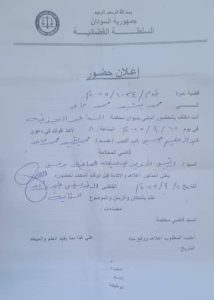 أنت مكلف بالحضور أمامي بديوان محكمة الدامر الجزئية في يوم ١٥/ ٩ / ٢٠٢٥م الساعة: ٨ صباحا لأخذ أقوالك في دعوى عبدالحليم حسين عبدالله //ضد // محمد بشير محمد حامد