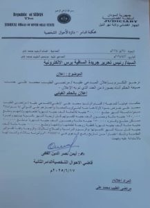 عقدت لجنة الإنضباط المنتخبة بالإتحاد السوداني لكرة القدم إجتماعا يوم الخميس 25 ابريل 2024م عبر تقنية الفيديو كونفرنس برئاسة مولانا مهدي محمد خليل البحر وبحضور جميع أعضائها ونظر الإجتماع الشكوي المقدمة من اللجنة القانونية وشئون الأعضاء بالإتحاد السوداني لكرة القدم ضد أمين مال نادي الرابطة كوستي ومحرري صفحة النادي علي موقع التواصل الإجتماعي فيس بوك وما ورد فيها.