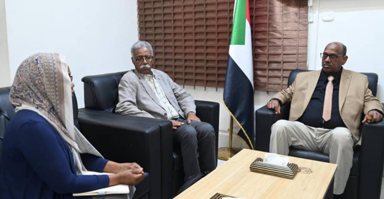 جاء ذلك خلال اجتماعه مع الأمين العام لمجلس التخصصات الطبية بروفيسر أحمد فرح شادول، بحضور مدير الإدارة العامة للموارد الصحية و البشرية د.امل عبده ومدير الإدارة العامة للصيدلة والعلاج المجاني د. نجم الدين المجذوب والمستشار القانوني بالوزارة أ.زاهر السر.