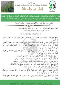 3.يتم دفع قيمة المشتريات عبر تطبيق إيصالي للسيد مدير عام وزارة المالية في موعد اقصاه ٤٨ ساعة من تاريخ المزاد .