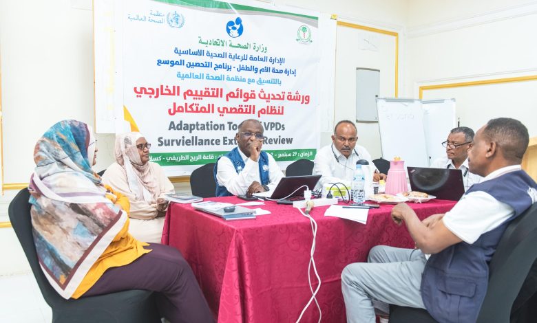 وفد منظمة الصحة العالمية الخاص بتقييم نظام الرصد والتقصي ببرنامج التحصين الموسع يصل البلاد ويتوجه للولايات المستهدفة غدا