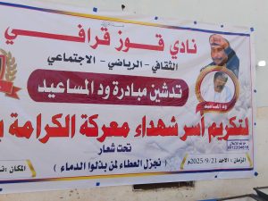 التحيه والتقدير والاحترام لشباب قوز قرافى على الكرم الحاتمي والنظام البديع وتظل مبادرة ودالمساعيد حدثا تزامن مع خسوف اوكسوف الشمس لكن رمزيه التكريم وجعل الشعار نجزل العطاء لمن بذلوا الدماء ختما واحدا وبصمة وقع عليها ودالمساعيد واستن حسنة يظل اجرها ساريا إلى يوم نقيف أمام رب العالمين.