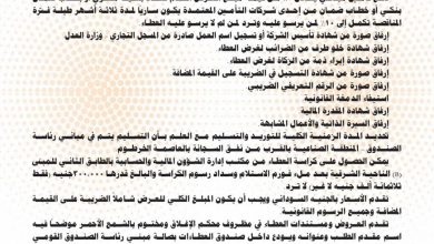 2- إرفاق أصل شهادة خلو طرف من الضرائب سارى المفعول بغرض العطاء.