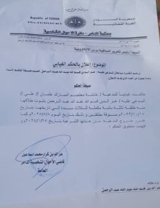 نرجو التكرم بإعلان المدعى عليه/ عزالدين قسم الله عبدالله عبدالرحمن، حسب صيغة الحكم أدناه ومدنا بصورة من العدد الذي تم به الإعلان.