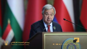 ونؤكد في هذا المنبر إلتزام حكومة السودان بتنفيذ خارطة الطريق التي تم تقديمها للأمم المتحدة والوسطاء والتي تشمل وقف إطلاق نار مصحوب بإنسحاب الميليشيا من كل المناطق والمدن التي تحتلها ، ورفع الحصار عن مدينة الفاشر بتنفيذ قرار مجلس الأمن الدولي رقم 2736 ثم عودة النازحين واللاجئين وتسهيل وصول المساعدات الإنسانية، وإستئناف العملية السياسية الانتقالية بتعيين حكومة مدنية من الكفاءات المستقلة مع حوار سوداني سوداني شامل يؤسس للوصول إلى الانتخابات، ولا يتأتى ذلك إلا بوقف إمداد الميليشيا بالسلاح والمرتزقة من داعميهم الإقليميين حتى يصبح تطبيق خارطة الطريق ممكنا حفظا لسيادة السودان ووحدته، وأمن القرن الأفريقي وأمن البحر الأحمر.