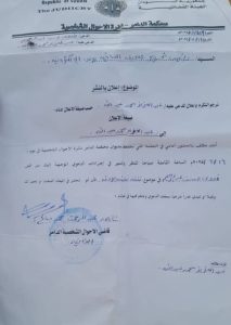 نرجو التكرم بإعلان المدعى عليه/ عبدالعزيز محمد عبدالله حسب صيغة الإعلان أدناه:
