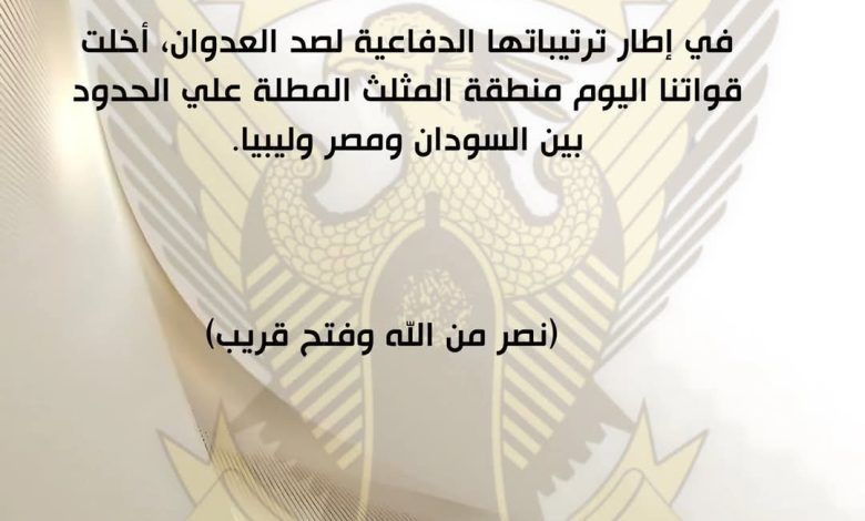 بيان من الجيش السوداني بشأن الموقف في منطقة المثلث