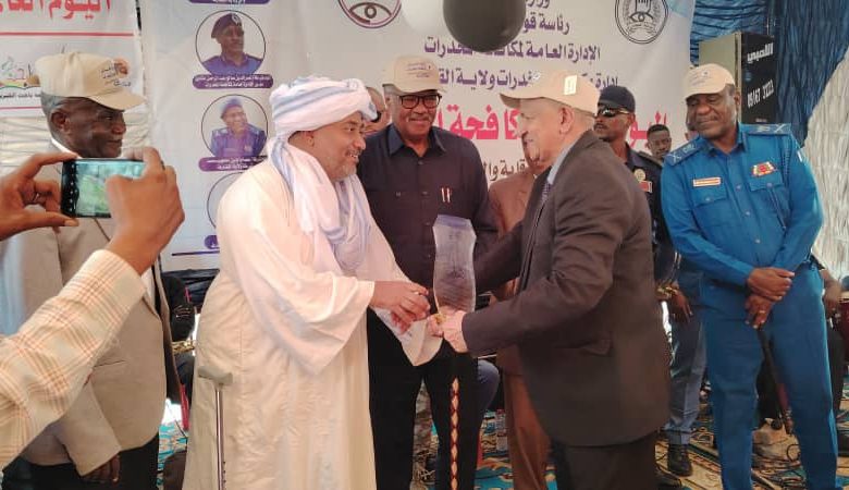 وأعلن الوالي المكلف عن تبرعه بمبلغ 15 مليون جنيه لصالح إدارة مكافحة المخدرات دعماً لأنشطتها وبرامجها، مؤكداً أن حكومة الولاية ستظل خط الدفاع الأول في مواجهة هذه الظاهرة التي تستهدف عصب المجتمع وقيمه.