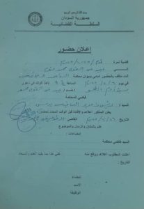 أنت مكلف بالحضور أمامي بديوان محكمة الدامر في يوم ٦/ ١١/ ٢٠٢٥م الساعة ١١ ونصف صباحا لأخذ أقوالك في دعوى سبت آدم انجلو //ضد // عبيد عبدالقوي محمد