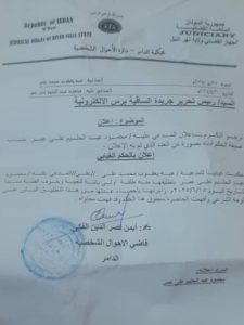 نرجو التكرم بإعلان المدعى عليه / محمد عبد الحليم علي عمر، ومدنا بصورة من العدد الذي تم به الإعلان.