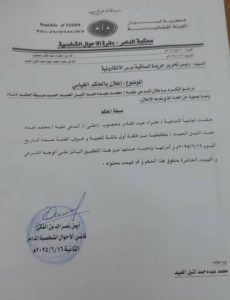 نرجو التكرم بإعلان المدعى عليه محمد عبده حمد النيل العبيد، حسب صيغة الحكم أدناه ومدنا بصورة من العدد الذي تم به الإعلان.
