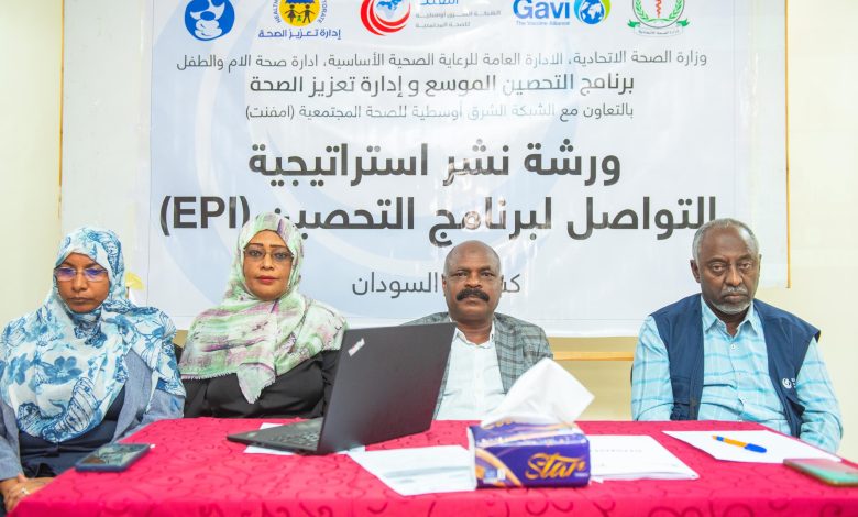 أعلن برنامج التحصين الموسع وإدارة تعزيز الصحة بوزارة الصحة الاتحادية، عن وضع استراتيجية الاتصال لبرنامج التحصين الموسع لفترة ثلاث سنوات بالتعاون مع الشبكة الشرق أوسطية للصحة المجتمعية.