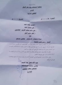 إلى شركة شامخات للاستثمار، بما أن الطاعنين المذكورين أعلاه قد اقاموا عليك دعوى طعن إداري مطالبين بالغاء القرار رقم 2018/357م الصادر من السيد مدير الإدارة العامة للأراضي الزراعية نهر النيل