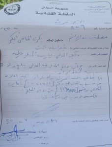 بما أن هذه القضية قد عرضت أمامي أنا بشير الطيب بابكر، للفصل في حضور المدعي وغياب المدعى عليه لقد صدر الأمر بأن: