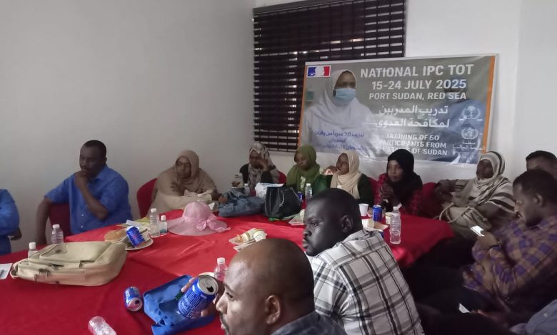 نظّمت وزارة الصحة الاتحادية، بالتعاون مع منظمة الصحة العالمية، ورشة تدريبية متخصصة حول مكافحة العدوى والوقاية منها، وذلك في الفترة من 14 إلى 24 يوليو بمدينة بورتسودان، وباستضافة كريمة من وزارة الصحة بولاية البحر الأحمر. جاءت الورشة ضمن إطار تعزيز بناء قدرات الكوادر الصحية في مجالات الوقاية، وتقوية نظم مكافحة العدوى بالمؤسسات الصحية على امتداد البلاد.