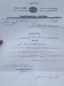 أنت مكلف بالحضور أمامي في الجلسة التي ستنعقد بديوان محكمة الدامر دائرة الأحوال الشخصية في يوم ٢٨ / ٨/ ٢٠٢٥م الساعة الثامنة صباحا للنظر والسير في إجراءات الدعوى الموجهة إليك من قبل / افراح موسى عبدالرحمن علي في موضوع إثبات طلاق فإن لم تحضر في الميعاد المحدد أو تعين لك وكيلا او تبدئ عذرا شرعيا سمعت الدعوى وحكم فيها في غيابكم.