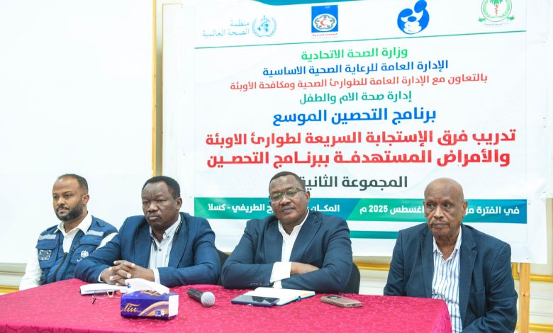 وممثلاً لمنظمة الصحة العالمية اعتبر د. حسين عطية، فرق الإستجابة السريعة خط الدفاع الأول، لهذا كانت ورشة التدريب من أجل تعزيز قدرات الولايات على الاستجابة السريعة للاوبئة خاصة التي يمكن الوقاية منها بالتطعيم، معلناً التزام المنظمة بالعمل على تحقيق شعار(الصحة بالجميع وللجميع).