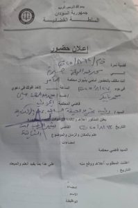 أنت مكلف بالحضور أمامي بديوان محكمة الدامر في يوم ٢٧ / ٨ / ٢٠٢٥م الساعة التاسعة صباحا لأخذ أقوالك في دعوى محمد بابكر //ضد // محمد عبدالرحمن حسين