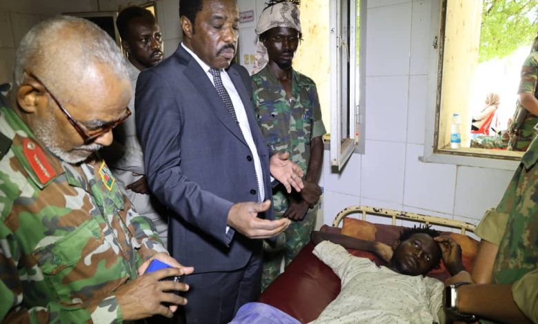 واطمأن على عمليات علاج جرحى منسوبي القوات المسلحة والمشتركة في السلاح الطبي بامدرمان بعدالة وفي عنابر واحدة بدون اي تمييز وقال :(هذه هي الروح الوطنية والعدالة التي ننشدها).
