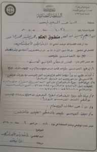 بما أن هذه القضية قد عرضت أمامي أنا الطريفي جابر زايد للفصل في حضور محامي الإدعاء والمدعي بشخصه وغياب المدعى عليه