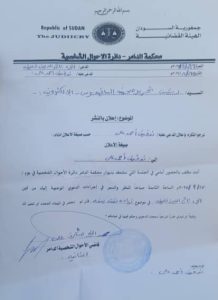 أنت مكلف بالحضور أمامي في الجلسة التي ستنعقد بديوان محكمة الدامر دائرة الأحوال الشخصية في يوم ١٧/ ٩/ ٢٠٢٥م الساعة الثامنة صباحا للنظر والسير في إجراءات الدعوى الموجهة إليك من قبل / آلاء تاج الدين خليفة في موضوع زيادة نفقة بنوة، فإن لم تحضر في الميعاد المحدد أو تعين لك وكيلا أو تبدئ عذرا شرعيا سمعت الدعوى وحكم فيها في غيابكم.