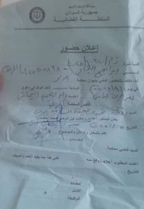 أنت مكلف بالحضور أمامي بديوان محكمة الدامر في يوم ١/ ٩ / ٢٠٢٥م الساعة ٨:٣٠ صباحا لأخذ أقوالك في دعوى نصر الدين عباس //ضد // إبراهيم التجاني