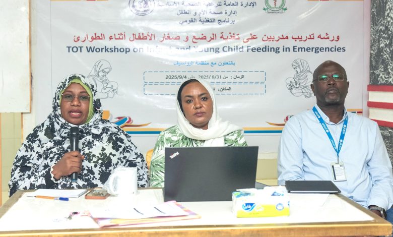 نظم برنامج التغذية القومي، ورشة تدريب مدربين على تغذية الرضع وصغار الأطفال أثناء الطوارئ، بقاعة الريح الطريفي بمدينة كسلا بالتعاون مع اليونسيف، على ان تختتم الخميس القادم.