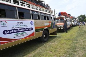 وزير الموارد البشرية والرعاية الاجتماعية ووالي القضارف يودعان النازحين العائدين إلى الولايات