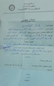 أنت مكلف بالحضور أمامي بديوان محكمة الدامر الجزئية في يوم ٢٤/ ٩ / ٢٠٢٥م الساعة: ٨ صباحا لأخذ أقوالك في دعوى طارق محمد عبدالله //ضد // راشد عبدالحي عوض