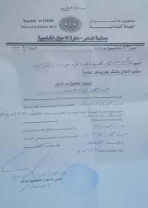 تقدم إلينا المدعو/ حسن محمد آدم حسن، بطلب يريد فيه تصحيح اسمه حيث أنه قد ورد بالقطعة رقم ١١٣ / مربع ١٣ حي المطار مدينة عطبرة باسم/ حسن محمد آدم، والصحيح هو حسن محمد آدم حسن، عليه كل من يدعي حقه في هذه القطعة عليه الحضور لهذه المحكمة لجلسة ٥/ ١٠/ ٢٠٢٥م.