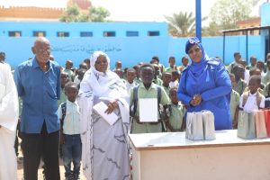 وفي بداية اللقاء، تحدثت إلينا الأستاذة ليلى خليفة محمد سيد أحمد، مديرة مدرسة الشيماء للبنات بقشلاق الشرطة، مشيدةً بحضور إعلام الشرطة للطابور الصباحي، وتقديمهم العديد من الجوائز والهدايا للطالبات المشاركات في المسابقات التي تضمنت طرح مجموعة من الأسئلة. وأشارت إلى أن المدرسة أصبحت وجهة جاذبة لتلميذات الشرطة وأبناء المنطقة المجاورة، حيث تضم 206 تلميذة في مرحلتي الأساس والمتوسط، لما تتميز به من كادر تعليمي متميز، مما جعلها قبلة تعليمية مفضلة في المنطقة. وأضافت أن وزارة الداخلية وقوات الشرطة ظلت تقدم الدعم المستمر للمدارس داخل قشلاق الشرطة.