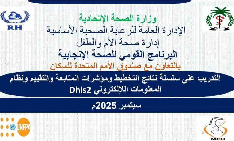 اختتمت اليوم فعاليات الدورة التدريبيةلمنسقي الصحة الانجابية ومسؤولي المتابعة والتقييم، بالإضافة إلى منسوبي البرنامج القومي للصحة الإنجابية، بدعم من صندوق الامم المتحدة للسكان،والتي استمرة 5 أيام في الفترة من 30 سبتمر إلى 4 أكتوبر الجاري.