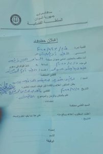 أنت مكلف بالحضور أمامي بديوان محكمة الدامر الجزئية في يوم ٧/ ١٠/ ٢٠٢٥م الساعة: ٨ صباحا لأخذ أقوالك في دعوى نجوى بابكر علي محمد //ضد // الطيب آدم محمد سعيد