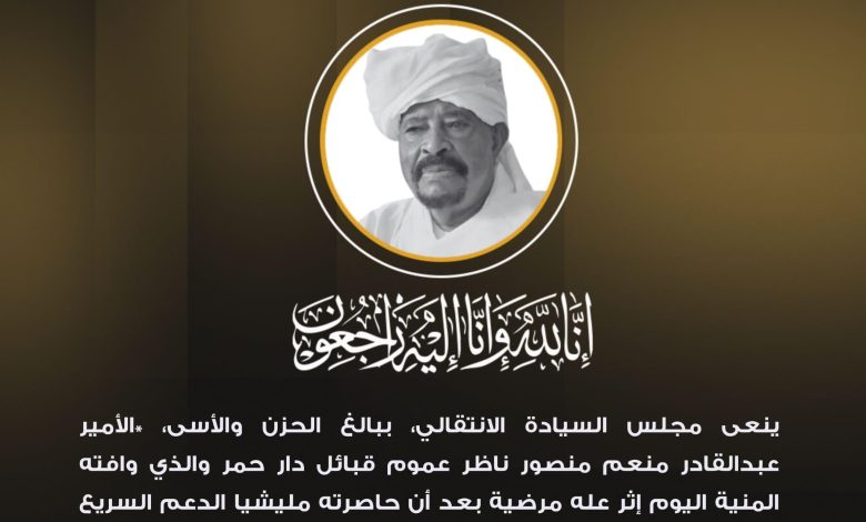 مجلس السيادة ينعي ناظر عموم قبائل دار حمر الأمير عبدالقادر منعم منصور