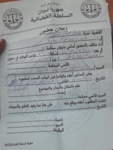 أنت مكلف بالحضور أمامي بديوان محكمة الدامر الجزئية في يوم ١٢/ ٣ / ٢٠٢٦ م الساعة التاسعة والنصف صباحا لأخذ أقوالك في دعوى آمنة مبارك الطيب // ضد // محمد أحمد عبدالحفيظ