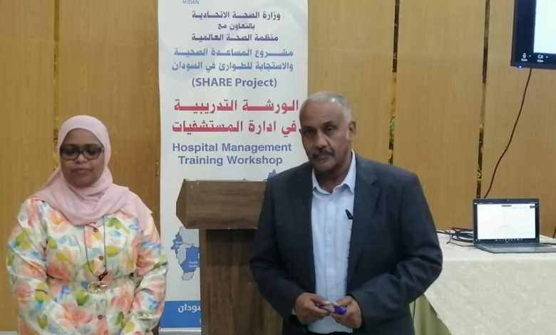 وتأتي هذه الورشة ضمن جهود وزارة الصحة الاتحادية ومنظمة الصحة العالمية لتعزيز الكفاءة الإدارية في المستشفيات ضمن مشروع (Share)، وتمكين الكوادر الصحية من مواكبة التطورات الحديثة في مجال الإدارة الصحية.