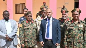 وأكد وزير الصحة الاتحادي أن الوضع الصحي يشهد تحسنًا مستمرًا، مشيرًا إلى أن هذه الزيارة تأتي امتدادًا لزيارات سابقة، وقال: “لولا فضل الله تعالي ثم جهود القوات المسلحة والقوات المساندة لها في معركة الكرامة، لضاعت البلاد”، متمنيًا النصر للقوات المسلحة وتحرير مدينة الفاشر وكافة المناطق من المليشيات الإرهابية.