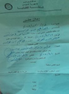 أنت مكلف بالحضور أمامي بديوان محكمة الدامر في يوم ١٧/ ١١/ ٢٠٢٥م الساعة ٨ صباحا لأخذ أقوالك في دعوى جعفر علي العوض //ضد // إبراهيم يس عويس