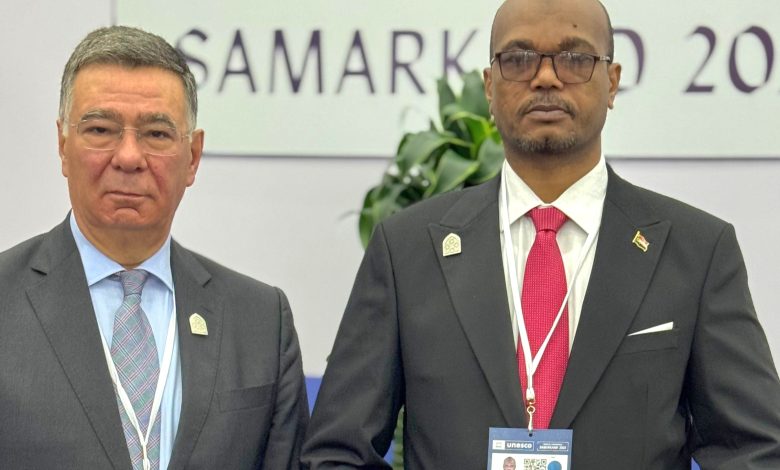 جاء ذلك على هامش مشاركته في أعمال الدورة 43 للمؤتمر العام لليونسكو بسمرقند في أوزبكستان، وحضر اللقاء السفير شريف آدم نصر والمستشار صلاح محمد إسحق والسكرتير الأول عزالدين موسى بابكر.