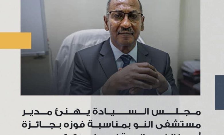مجلس السيادة يهنئ مدير مستشفى النو بمناسبة فوزه بجائزة أورورا الإنسانية