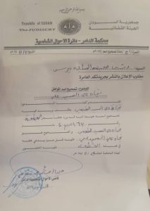 تقدم إلينا المدعو/ نجاة علي السيد علي، بطلب يريد فيه تصحيح اسمه حيث أنه قد ورد خطأ بسجل القطعة رقم ١٦٣ مربع ٤ الدامر، باسم/ نجاة علي السيد المطبعجي والصحيح هو/ نجاة علي السيد علي، عليه كل من يدعي حقه في هذه القطعة عليه الحضور لهذه المحكمة لجلسة ٢٦/ ١١ / ٢٠٢٥م