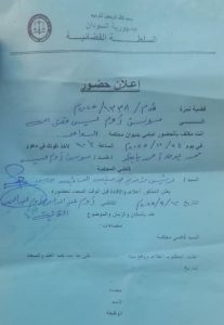 أنت مكلف بالحضور أمامي بديوان محكمة الدامر في يوم ٢٤/ ١١/ ٢٠٢٥م الساعة ١٠ صباحا لأخذ أقوالك في دعوى محمد عوض أحمد بابكر //ضد // سوسن آدم عيسى