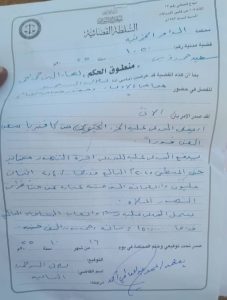 بما أن هذه القضية قد عرضت أمامي أنا بلال السر حمدو، الثانية، للفصل في حضور محامي الإدعاء وحضور محامي الدفاع
