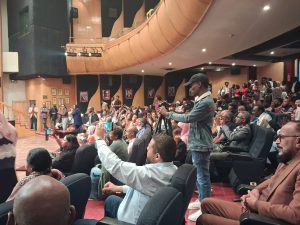 كما شمل تقديم عرض مسرحي سوداني بمسرح نقابة الصحافيين المصريين بعنوان (الخروج.. نساء في زمن الحرب) قدمته الأستاذة / هند زمراوي ، والفنانة / رحاب ، كما قدمت فرقة عهد الجلاد بقيادة الفنان المبدع شمت محمد نور ، وفرقة كورال أصوات السودان ، فواصلاً غنائية وطنية تفاعل معهما الجمهور.