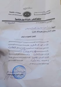 تقدم إلينا المدعو/ عثمان محمد حمد الحلبي، بطلب يريد فيه تصحيح اسمه حيث أنه قد ورد خطأ بسجل القطعة رقم ٤١٩ مربع ٢٩ الدامر، باسم/ عثمان محمد الحلبي والصحيح هو عثمان محمد حمد الحلبي عليه كل من يدعي حقه في هذه القطعة عليه الحضور لهذه المحكمة لجلسة ٤/ ١٢/ ٢٠٢٥م