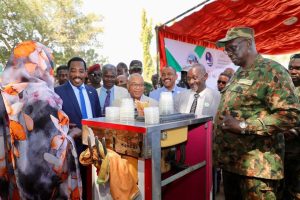 ودشن الوزير ووفده المرافق نفرة بشارات الكرامة التي شملت 6500 جوال ذرة، 5000 من السلال الغذائية، والمشروعات الإنتاجية للفقراء والمساكين والنازحين وأسر الشهداء ـ شملت المشروعات: تربية الدواجن، مناحل العسل، أدوات الإنتاج للأسر الفقيرة، البقالات الصغيرة، ودعم المهن الهشة. كما قدمنا ألف لبسة عسكرية دعما للمجهود.