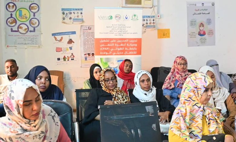 أطلقت وزارة الصحة الاتحادية ورشة تدريب المدربين على استخدام جهاز ضغط الهواء في مدينة بورتسودان، وذلك ضمن المرحلة الأولى التي تشمل خمس ولايات ، مع توزيع 32 جهازاً على 8 مستشفيات ، بهدف خفض وفيات الأطفال حديثي الولادة بدعم من منظمة سابا .