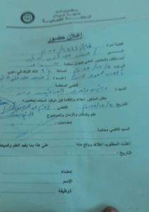 أنت مكلف بالحضور أمامي بديوان محكمة الدامر في يوم ١١ / ١٢/ ٢٠٢٥م الساعة التاسعة والنصف صباحا لأخذ أقوالك في دعوى أيوب محمود حسن / ضد / آمنة مصطفى الطيب