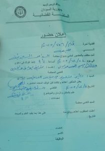 أنت مكلف بالحضور أمامي بديوان محكمة الدامر في يوم ٢٤/ ١٢/ ٢٠٢٥م الساعة التاسعة والنصف صباحا لأخذ أقوالك في دعوى ورثة عبدالله مرسال / ضد / شريف يوسف وآخرين